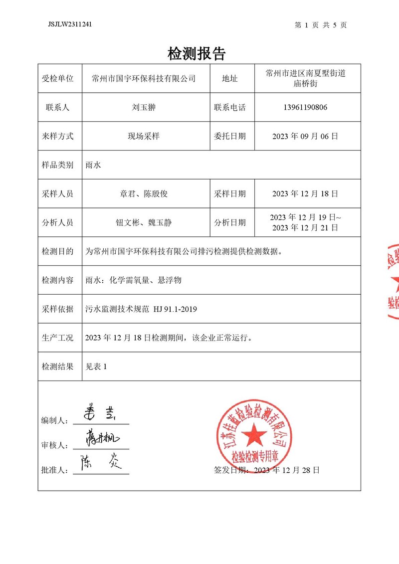 雨水檢測報(bào)告